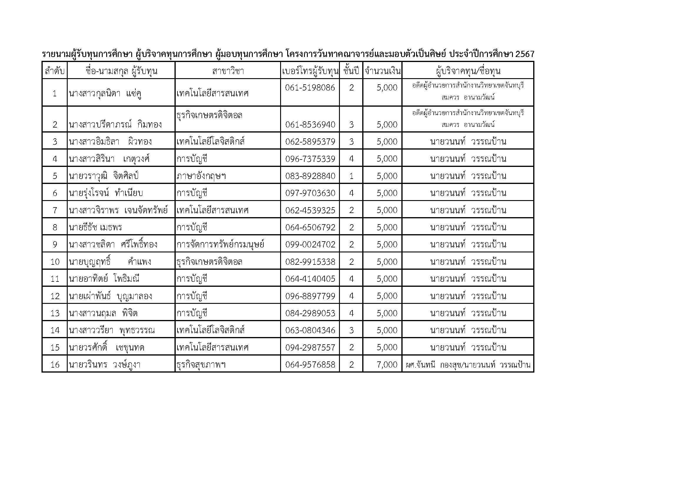 เรื่อง รายนามผู้ได้รับทุนการศึกษา โครงการวันทาคณาจารย์และมอบตัวเป็นศิษย์ ประจำปีการศึกษา 2567
